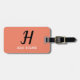 Elegante, minimale, pfirsichfarbene, schwarze, weiße Gepäckmarke. Personalisiert Modernes, Monogramm, Skriptdesign. Sie können das Design mit Namen ändern, initial.