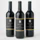 Elegante Monogram Script Moderne Wedding Black Gol Weinetikett