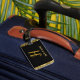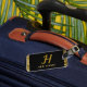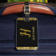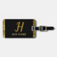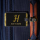 Eleganter, minimaler, schwarzer, goldener Gepäckanhänger. Personalisiert Modernes, Monogramm, Skriptdesign. Sie können das Design mit Namen ändern, initial.