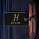 Eleganter, minimaler, schwarzer, goldener Gepäckanhänger. Personalisiert Modernes, Monogramm, Skriptdesign. Sie können das Design mit Namen ändern, initial.