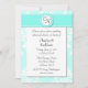 Elegante Hochzeit Probe Dinner Einladung, in Aquamarine und Weiß. Schöner Aquamarin-weißer Damast-Hintergrund, mit weißer Textebene, in der Mitte. Schöne Grafik eines großen Aquamarine und weißen Band, über die Spitze. Eine dekorative runde Scheibe, in der Mitte des Band, hat ein Monogramm mit zwei Buchstaben für die Initialen der Braut und des Bräutigams. Personalisieren Sie den gesamten Text, um Ihre Probe Abendessen benötigt Anzug.