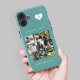 Fügen Sie neun Foto-, Kinder-, Haustiere- oder Freundbilder hinzu und erstellen Sie Ihre eigene, wunderschöne Handykassette mit Ihrem Monogramm-Namen, die Sie in einem weißen Herz über einem aquamarinen, grünen Hintergrund erhalten. ++++++++++ Einfach mit Ihren benutzerdefinierten Bildern und Buchstaben personalisieren