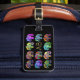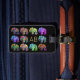 Dieses ausgeklügelte Reise-Tag bietet Paraden von wunderschön gefärbten, dekorativen Elefanten, die sich in Lebhaftigkeit und Farbe unterscheiden und vor einem schwarzen Hintergrund glänzen.