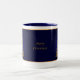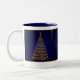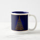 Buvez votre boisson dans cette tasse d'or élégante et festive avec un arrière - plan bleu et dit Joyeux Noël.