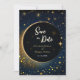 Set den Ton für eine magische Feier mit dieser eleganten mystischen Crescent Moon Celestial Starry Night Save the Date. Die Karte ist mit einem tiefen, stimmungsvollen Hintergrund gestaltet und mit einem glühenden Halbmond, funkelnden Sternen und zarten himmlischen Akzenten in Imitaten mit Gold geschmückt. Sie erfasst die Romantik des Kosmos. Ideal für himmlische, boho- oder mondbeleuchtete Hochzeitsthemen, verspricht es eine unvergessliche Nacht unter den Sternen. Lass deinen Gästen, dass eine traumhafte Feier erwartet.