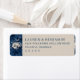 Dieses Rücksendeetikett verfügt über ein anspruchsvolles Design mit einem ausgewogenen Layout, das ein dunkelblaues florales Muster links und einen hellbeigen Hintergrund rechts kombiniert. Die Farbpalette umfasst ein tiefes Marineblau und ein sanftes Creme, wodurch ein eleganter Kontrast entsteht. Die klassische Serifenschriftart verleiht einen formellen Touch und macht es perfekt für Hochzeiten oder besondere Anlässe. Anpassbare Textfelder ermöglichen eine Personalisierung, während der Gesamteindruck Zeitlosigkeit und Raffinesse ausstrahlt.
