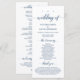Elegante Klassik Navy Blue Skript, Hochzeitsfeier Programmkarte. Es ist mit Scrollakzent entworfen, der personalisiert werden kann mit benutzerdefiniertem/personalisiertem Text für Ihr Brautparty, Zeremonie Details, Gedenkhinweise und Dankeschön-Nachricht. Wenn Sie weitere Programmkarten-Typen und -Größen suchen, durchsuchen Sie bitte unseren passenden Programmkartenabfrageabschnitt.