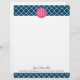 Elegante Navy-Quatrefolie mit rosa Monogramm Briefbogen