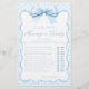 Ausgeklügelter Klassiker "Raten Sie mal wer? Mommy or Daddy"-Spiel, das für eine Babydusche konzipiert wurde und mit einem zauberhaften pastellblauen Bogen, einem Band-Rahmen und einem skurrilen Polka-Punktmuster im Hintergrund geschmückt ist. Gönnen Sie Ihren Gästen dieses wunderbare Spiel, das sich perfekt eignet, um Ihre Feier mit viel Spaß und Spannung zu gestalten und gleichzeitig wertvolle Erinnerungen zu schaffen.