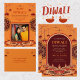 Feiern Sie das Festival der Lichter stilvoll mit dieser eleganten und modernen Einladung von Diwali! Die Karte mit einem reichhaltigen, orangefarbenen Hintergrund mit braunen Mandala-Designs, glänzenden Öllampen (Diyas) und festlich hängenden Laternen ist der perfekte Set für Ihre Diwali-Feier. Personalisieren Sie die Details für Ihre Veranstaltung, ob es sich um eine Ansammlung, ein Diwali-Party oder um eine Feier in der Gemeinde handelt. Eine wunderschöne und elegante Art, Ihre Lieben zum Licht, Lachen und Freude einzuladen!