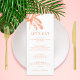 Genießen Sie Ihren Empfang mit diesem eleganten Palm Tree Tropical Wedding Menu, mit einer weichen "Peach Fuzz" orangefarbenen Palme und einer ausgefeilten Typografie, die Ihnen ein boho-Ambiente verleiht. Dieses Menü, das den Charme der Insel mit der modernen böhmischen Eleganz verbindet, präsentiert Ihre Hochzeitsküche wunderbar und verleiht Ihrem Tisch eine raffinierte Touch. Ideal für Strandhochzeiten, tropische Empfang und Feiern an der Küste, auf Premium-Papier gedruckt mit individuell anpassbaren Details, um Ihren besonderen Tag zu erfüllen. Ein stilvoller Weg, um Ihr Abendessen am Meer, ein Inselfest oder ein Sonnenuntergang zu genießen.