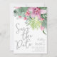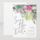 Ein tropisches Design, das die ruhige Schönheit der Natur mit einem spielerischen Rand verbindet, der Ihnen sicher hilft, Spaß zu haben. Eine Mischung aus beruhigenden tropischen Blätter, wie Bananenstauden, Palmen, Monstera-Blätter, rosa Princessa-Pflanze, sanftes lila-rosa Orchideengebirge und Protea-Blüte, die mit verschiedenen anderen Blättern verwoben sind. Dieser bezaubernde Print, der durch einen modernen handgeschriebenen Schriftart ergänzt wird, strahlt Charme und Eleganz aus. Dieses vielseitige Design bringt ein Gefühl von tropischem Paradies in jede Umgebung oder jeden besondere Anlass, das es perfekt für eine Hochzeit in Urlaubsort, oder nur, wenn Sie gewollt, einen tropischen Flair hinzuzufügen. Fun Moderne florale Palm Blätter Tropische Hochzeit Speichern Sie das Datum als gedruckte Einladung, oder als downloadbare digitale laden, dass Sie in E-Mail senden können oder vor Ort gedruckt haben!