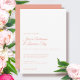 Die elegante Peony Peach Floral Minimal Wedding Einladung verfügt über eine Single Peony Blume auf der Rückseite des Einladens über eine solide Farbe Block Hintergrund. Der Script-Schriftart ist mit klassischer Serifentypografie für ein sauberes, elegantes Design gepaart, das sich perfekt für eine schwarze Krawatte oder ein halbraustiges Event eignet. Ideal für ein Gartenthema Frühjahrshochzeit.