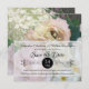 Kleine, elegante und romantische Ankündigung Datum freihalten für frisch verlobte Paare, um die Verlobung anzukündigen und sich von der Familie und den Freunden der Stadt über den Termin für ihre Reisepläne zu informieren. Dieses romantische, blumengeschmückte Hochzeitsfest-Set wurde von Audrey Jeanne Roberts aus einem exquisiten Gemälde entworfen und verfügt über ein komplettes Sortiment an Produkten, die koordiniert werden können. Weiße, gelbe und rosafarbene Blume werden mit weißen wilden Rose und einer weißen Hydrangea-Blüte vermischt. Ihr Text ist auf einer Velumschicht personalisiert, die es der Kunst erlaubt, durch die flüchtige Blick zu gehen. Alle Rechte vorbehalten.