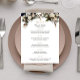 Menu de réception monogrammé mariage de texte modifiable avec de belles fleurs blanches et d'ivoire et des bouquets de verdure avec feuillage saisonnier, branches, pinecones et feuilles. ++++++++++++++++++++ Idéal pour vos mariages d'hiver à thème botanique. ++++++++++++++++++ Pour les éléments mariages coordonnés, veuillez voir la collection entière sous l'image principale.