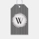 Dieses Design zeichnet sich durch ein elegantes Monogramm aus, das in einem silberfarbenen Kranz mit schwarz-weiß gestreiften Hintergrund eingekreist ist. Sie können die schwarzen Streifen in jede andere Farbe ändern, indem Sie die Option "Anpassen" verwenden und eine andere Hintergrundfarbe wählen. Geben Sie Ihr Monogramm anstelle des Beispielmonogramms ein, das für ein schönes individuelles Geschenktag angezeigt wird. Wenn Sie Ihr Monogramm neu zentrieren müssen, verschieben Sie es einfach, um es anzupassen. Auf der Rückseite dieses Tags befinden sich "To" und "From".