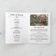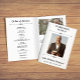 Élégant programme funéraire plié blanc avec photos, polices élégantes et détails de goût. Programme funéraire plié blanc avec texte noir et détails élégants personnalisés avec photos, nécrologie, ordre de service, et reconnaissance.