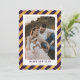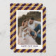 Elégante carte photo de Nouvel An violet et or avec rayures modernes, flocons de neige et étoiles. Personnalisez facilement en ligne. L'effet de feuille d'or n'est simulé que dans l'illustration.