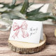 Mit dieser eleganten Pink Bow Pearls Baby Shower Dankeschön Card möchten Sie sich stilvoll bedanken. Mit einem zarten rosa Satin-Bogen, Perlakzenten und einem eleganten Design ist diese Karte der perfekte Weg, um Ihren Gästen zu danken, dass sie die Ankunft Ihres kleinen Mädchens feiern. Die weichen, femininen Details verleihen dem Hotel einen zeitlosen Charme und machen es zu einem wunderschönen Zuhause für Freunde und Familie.