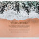 Le tout dans une destination de plage une invitation triplée de mariage avec un arrière - plan de plage tropical d'été, avec des feuilles de palmiers et des lampes à cordes. Vous pouvez ajouter une photo personnalisée de vous et de votre partenaire, les détails du mariage tels que les informations de logement et de présenter des demandes, l'invitation, et une carte postale rsvp pour que vos invités coupent et renvoient.