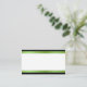 Elegante weiße Hochzeitsempfang-Platzkarten. Ein hübsches, hellgrünes Satinband, das oben und unten mit einem schwarzen Streifen auf weißem Hintergrund aussieht. Platzkarten, die für Sie bereit sind, Ihre Gäste zu benennen. Matching Tischnummer Cards verfügbar.