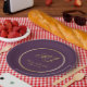 Diese eleganten personalisierten Hochzeitspapier-Teller sind mit den Monogramm-Initialen der Braut und des Bräutigams sowie ihren Vornamen und ihrem Hochzeitstermin in Imitaten mit goldener Kalligraphie auf einem lila Pflaumenhintergrund umgeben von einem dünnen goldenen und schwarzen Rundrahmen versehen. Karo in unserem I Liebe Weddingz Shop um mehr zu erfahren. Entworfen von Susan Coffey.