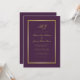 Mit dieser eleganten, maßgeschneiderten, monogramm flachen Hochzeitseinladung in pflaumenfarbenem lila und Gold laden Sie Ihre Gäste stilvoll ein. Das schicke Design beinhaltet Imitate goldene Monogramm-Initialen in klassischer Schrift-Typografie, zusammen mit all Ihren Hochzeitsdetails, um mit einem glänzenden Imitat goldenen Rahmen zu personalisieren. Herzlichen Glückwunsch für Ihre Hochzeit und Ehe! Entworfen von Susan Coffey.