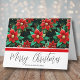 Eine festliche und lustige Weihnachtskarte mit einem lebendigen, bemalten Effekt-Muster aus roten Poinsettia-Blume, grünen Blätter, goldenen Akzenten und Wirbel auf einem fast schwarzen Hintergrund. Der Text "Frohe Weihnachten" ist elegant am unteren Ende geschrieben, zusammen mit Ihrem Familiennamen oder Firmennamen. Dieses Design ist perfekt, um mit seiner lebhaften und bunten Ästhetik den Feiertagsszauber zu vermitteln. Im Inneren können Sie eine persönliche Note hinzufügen oder für eine handgeschriebene Nachricht leer verlassen werden. Die Hauptbotschaft kann auf "Happy Holidays" oder "Feiertage" angepasst werden, wenn Sie es vorziehen. Diese Karte ist ideal, um Liebenden und Kollegen gleichermaßen herzliche Wünsche zu senden und den Geist der Saison auf fröhliche und elegante Weise zu erfassen. Elegante Black Red Green Einzigartige festliche Poinsettia Blume Script Frohe Weihnachtskarte. Erhältlich als gedruckte Karte oder als digitale Karte zum Herunterladen, die Sie per E-Mail versenden können oder lokal gedruckt haben!