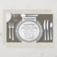 Hübscher, eleganter weißer Damast Tischtuch und silberne China Platz Einstellung Hochzeit Probe Dinner Einladung Vorlage. Sie können diese elegante Probe Dinner Einladung ganz einfach mit Ihren Veranstaltungsdetails im Schriftart Stil, Farbe und Wortlaut Ihrer Wahl anpassen.