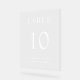 Simple clair acrylique signe numéro de table de mariage avec "Table" et le numéro de table en élégante typographie serif blanche, ainsi que vos noms et votre date de réception en typographie blanche moderne. Créez chaque numéro de table individuellement et ajoutez un à la fois à votre panier, puis vérifiez quand tous les numéros sont dans votre panier.
