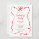 Diese elegante und minimalistische Einladung zur Weihnachts- und Feiertagsparty besticht durch eine zarte Grenze mit roten Bändern und einem Bogen. Das moderne Design ist perfekt für ein zartes und geschmackvolles Event.