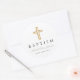 Personalisierter eleganter Religious Cross Sage Green Script Taufe Classic Round Sticker.