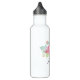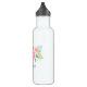 Eine personalisierte Wasserflasche mit einer schönen und eleganten Aquarellfarbe schuf ein Blumenstrauß. Rosa Blume, umgeben von hellgrünem Grün.
