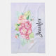 Küchenhandtuch mit einer schönen und eleganten Aquarell erstellt Blumenstrauß. Rosa Blume, umgeben von hellgrünem Grün. Lila Aquarell Personalisieren mit einem Namen.