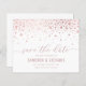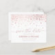 Mit dieser eleganten, anpassbaren, Save the Date flachen Karte laden Sie Ihre Familie und Freunde zu Ihrer Hochzeit ein. Es zeigt Imitate Rose Goldfolie Konfetti Punkte, elegante Drehbuch und einfache Typografie. Personalisieren Sie diese moderne Save the Date-Karte, indem Sie Namen, Datum und andere Details hinzufügen. Diese Imitate rosa Folie Save the Date ist perfekt für jede Hochzeitsreise oder Jahreszeit.