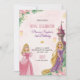 Rosa Geburtstag Eine rosa Geburtstagseinladung für "Prinzessin Sophias 3. Geburtstag" mit zwei Prinzessinnen-Illustrationen, eine in Rosa und eine in Lila, umgeben von Blumen und einem Schloss. Der Text enthält Details zur Veranstaltung und Informationen zur RSVP auf einem Marmorhintergrund. Der Ton ist verspieltt und festlich.