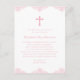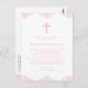 Diese hübsche rosa Postkarte eignet sich perfekt für die Taufe oder Taufe eines kleinen Mädchens. Die Einladung enthält ein rosa Kreuz und eine elegante rosa Zierleiste am oberen und unteren Rand der Karte. Der Text kann in Anzug einer ersten Kommunion oder Bestätigung geändert werden. Fügen Sie Ihre Rücksendeadresse auf die Rückseite und ggf. einen zusätzlichen Text.