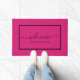 Elegant willkommen Doormat mit einem schwarzen Skript auf einem rosa Hintergrund. Personalisieren Sie Ihre Daten mit Ihrem Familiennamen oder Text.