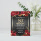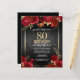 Elegante Imitate goldene Konfetti-Highlights an der oberen und unteren Grenze. Helle tiefe rote Rosen mit goldenen Blumenakzenten. Alle Texte sind individuell einstellbar und lassen sich für Ihr eigenes Party leicht ändern. Großes elegantes Geburtstagsgeschmacksdesign.