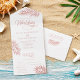 Diese elegante Rose Gold All-in-One-Hochzeit laden mit Skriptkalligraphie und tropischen Blätter mit weißem Hintergrund ein. *Wenn Sie andere Produkte mit diesem Design wünschen oder andere Hilfe benötigen, kontaktieren Sie mich bitte über den Zazzle Chat.