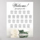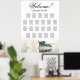 Elevez l'élégance et le raffinement de votre réception de mariage avec ce magnifique tableau de 22 places. Le design floral moderne présente un rose en ivoire, blanc ou crème qui se repose horizontalement, se reflétant élégamment dans un bassin d'eau serein. Le tableau peut accueillir jusqu'à 220 personnes avec une disposition classique de 10 places par table. Le titre est écrit en écriture calligraphique stylisée, accueillant vos invités et les guidant à leur place. La partie inférieure offre suffisamment d'espace pour les noms du couple et la date du mariage, ajoutant une touche personnelle à votre décor. Ce tableau de sièges exsume le charme, la grâce et le glamour, et est la façon parfaite d'assurer un agencement de sièges lisse et élégant pour vos invités.
