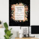 "Elegante Rose Blues Black Welcome Wedding Poster." Vollständig anpassbar für jeden Anlass. Schwarzer Damast-Hintergrund mit vergoldetem Rahmen aus Rose, Scrollwerk und elegantem Vintagem Blumenstrauß-Design in Rosa, blassem Senf, Pfirsich und roten Blume. Hergestellt von Audrey Jeanne Roberts, international lizenzierter Künstlerin und Designerin, Urheberrecht.