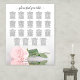 Ce magnifique tableau de 19 places mariage présente un design romantique avec une rose rose rose vif réfléchissant dans l'eau avec des vagues et des ondulations. Le titre dit "s'il vous plaît trouvez votre table" dans la calligraphie de script dentée. Il y a de la place pour les noms du couple et la date du mariage. Ce tableau a des affectations de table pour 190 invités - 10 personnes par table.