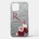 Elegante Rot-Blush-Rose mit Monogramm auf Grau Case-Mate iPhone Hülle