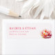 Dieses Rücksendeetikett verfügt über ein minimalistisches Design mit einem sauberen weißen Hintergrund, das ein elegantes und anspruchsvolles Aussehen schafft. Das Layout umfasst eine kühne, serifenbetonte Typografie in Großbuchstaben in einem tiefroten Farbton für die Namen, kombiniert mit einer zarten, aquarellartigen Illustration einer Rose in sanften rosa und pfirsichfarbenen Tönen. Die Gesamtwirkung ist romantisch und dezent und eignet sich perfekt, um Ihre Korrespondenz mit Wärme zu versehen. Ideal für diejenigen, die klassische Schönheit und Schlichtheit schätzen, vereint dieses Etikett Förmlichkeit mit künstlerischem Charme.