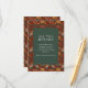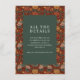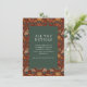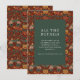 Diese elegante Hochzeitseinschlusskarte verfügt über ein symmetrisches Layout mit einem zentralen dunkelgrünen Feld, das von einer komplizierten floralen Umrandung umgeben ist. Das Design zeigt eine reiche Farbpalette aus tiefen Rottönen, Maronen und Akzenten in Orange, Rosa, Creme und Blaugrün, die eine vintage-inspirierte Ästhetik schafft. Stilisierte Blumen wie Pfingstrosen und Rosen sowie kleine Vogelillustrationen umrahmen den Text schön, der in einer sauberen Serifenschrift für eine gute Lesbarkeit präsentiert wird. Perfekt, um Ihrem Hochzeitsset einen Hauch von Raffinesse zu verleihen, vermittelt diese Karte eine formelle und verfeinerte Stimmung, ideal für besondere Anlässe.