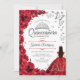 Rot, weiß silber Blumenladen Quinceanera Feier Einladung. Features brünettes Mädchen in Ballkleid, Skript-Schriftart, Silberschmetterlinge, rote Rosen und Tiara. Ideal für eine elegante Glasfeier im Prinzessinnstil. Personalisieren Sie Ihre persönlichen Daten. Gedruckte Zazzle Einladungen oder Sofortdownload digitalen druckbaren Vorlage.