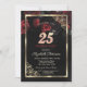 Elegante Rote Rosen Frame Black 25. Geburtstag Einladung