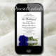 Diese schöne Hochzeitseinladung ist einfach, traditionell und elegant. Es ist ein wunderschönes Foto einer lang gezimmerten, lebhaften königsblauen oder kobaltfarbenen Rose, die sich in einem Wasserbecken mit formaler Formulierung widerspiegelt, in dem die Brauteltern die Einladung aussprechen. Die extravagante Skriptkalligraphie verleiht ihr einen zeitlosen und klassischen Stil. Eine schöne Art, Ihre Freunde und Familie zu einem Teil Ihres besonderen Tages einzuladen.