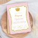 Lassen Sie sich mit dieser eleganten Rosa Kronprinzessin zum Geburtstag Ihres kleinen Mädchens wie eine königliche Veranstaltung fühlen! Mit einer zarten Krone, einem verzierten rosa Rahmen und weichen Pastelldetails ist dieser Ort der ideale Ort für märchenhafte Party und Prinzessinnen. Ideal für Kleinkinder und junge Mädchen. Vollständig anpassbar mit Name, Alter, Datum und UAWG. Einfach zu personalisieren, auszudrucken und zu teilen - perfekt für ein wirklich magisches Fest!